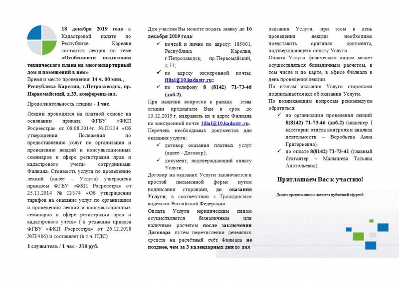 18.12.2019 Росреестр приглашает на лекцию по теме "Особенности подготовки технического плана многоквартирного дома и помещений в нем"