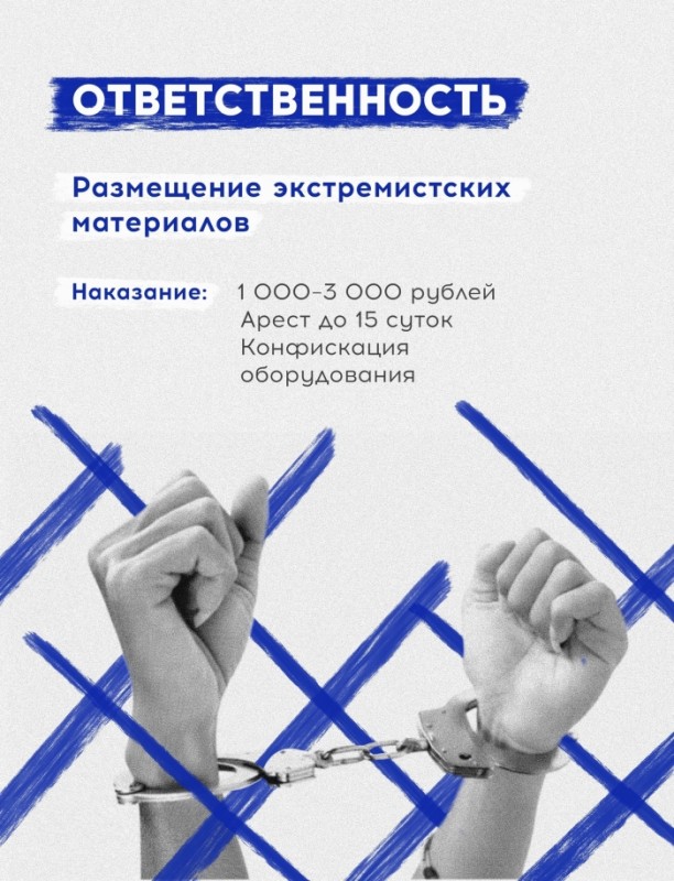 Сегодня публикации распространяются моментально, но важно помнить об ответственности. Размещение экстремистских материалов (включая аудио, видео и тексты) может обернуться административным наказанием: