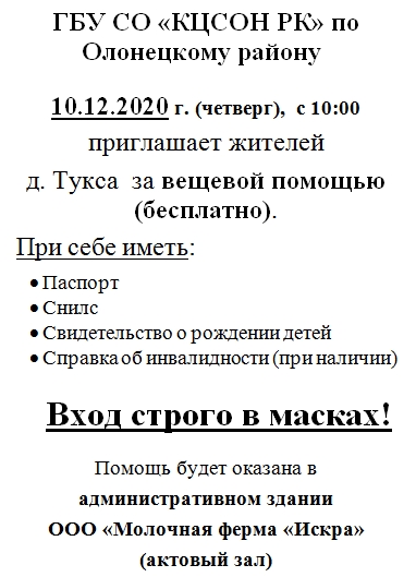 Объявление ГБУ СО «КЦСОН РК» по Олонецкому району